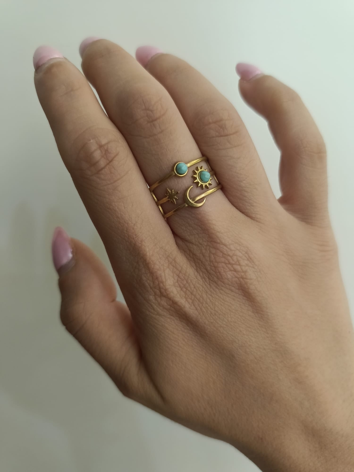 Anello sole luna con turchese