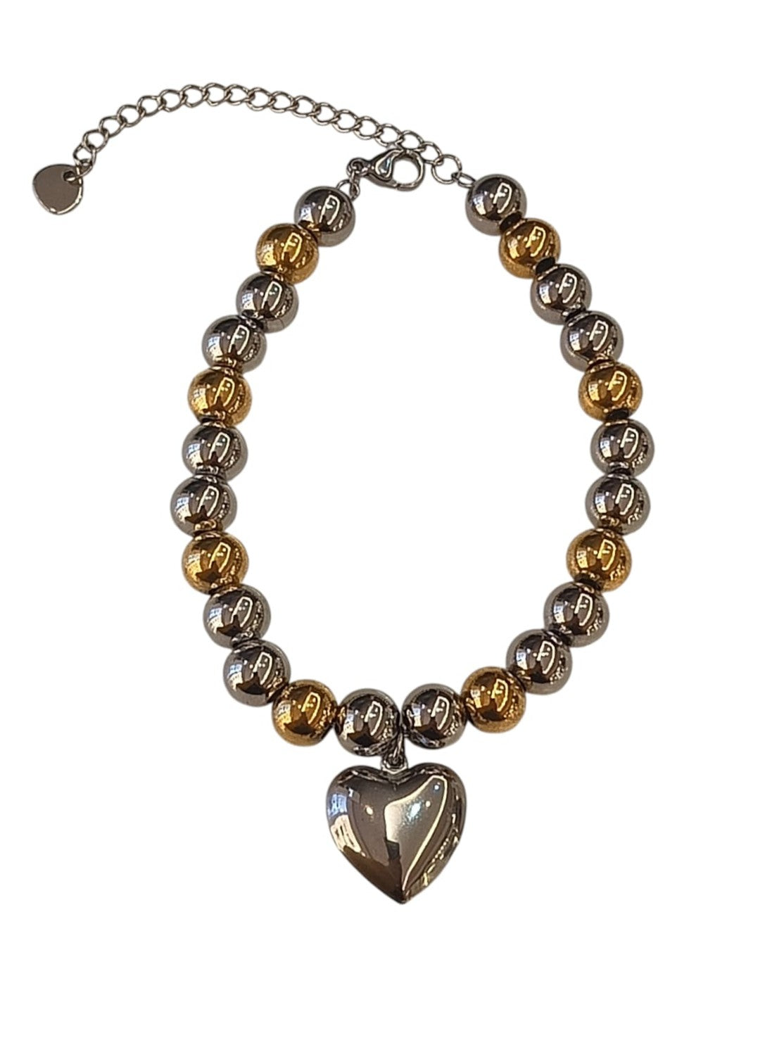 Bracciale a sfera 8 mm bicolor + cuore sonaglio, in acciaio inossidabile regolabile.