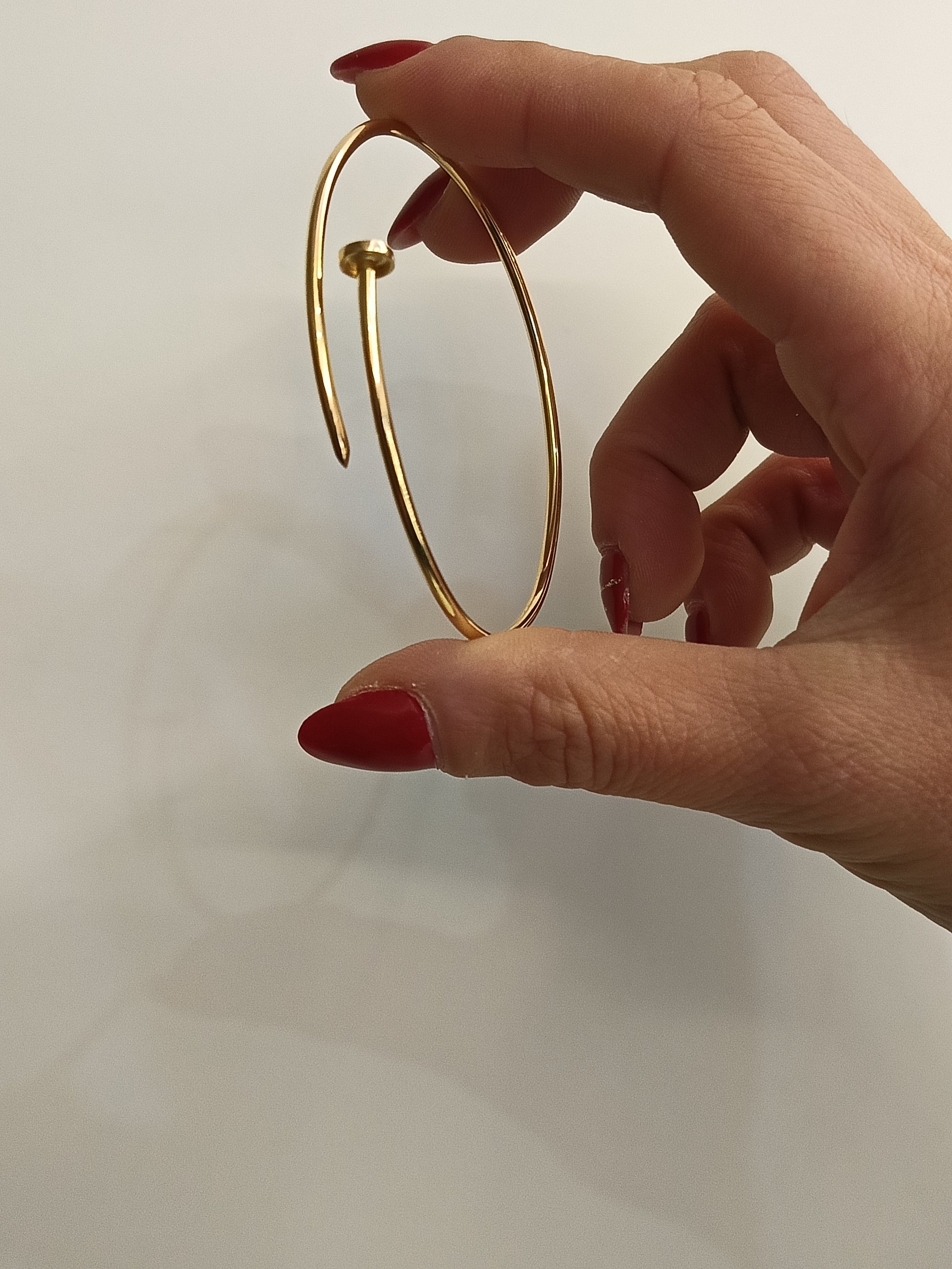Aggiungi un gioiello moderno e raffinato alla tua collezione con questo bracciale in oro 18 kt a forma di chiodo, perfetto per uno stile unico e di classe.