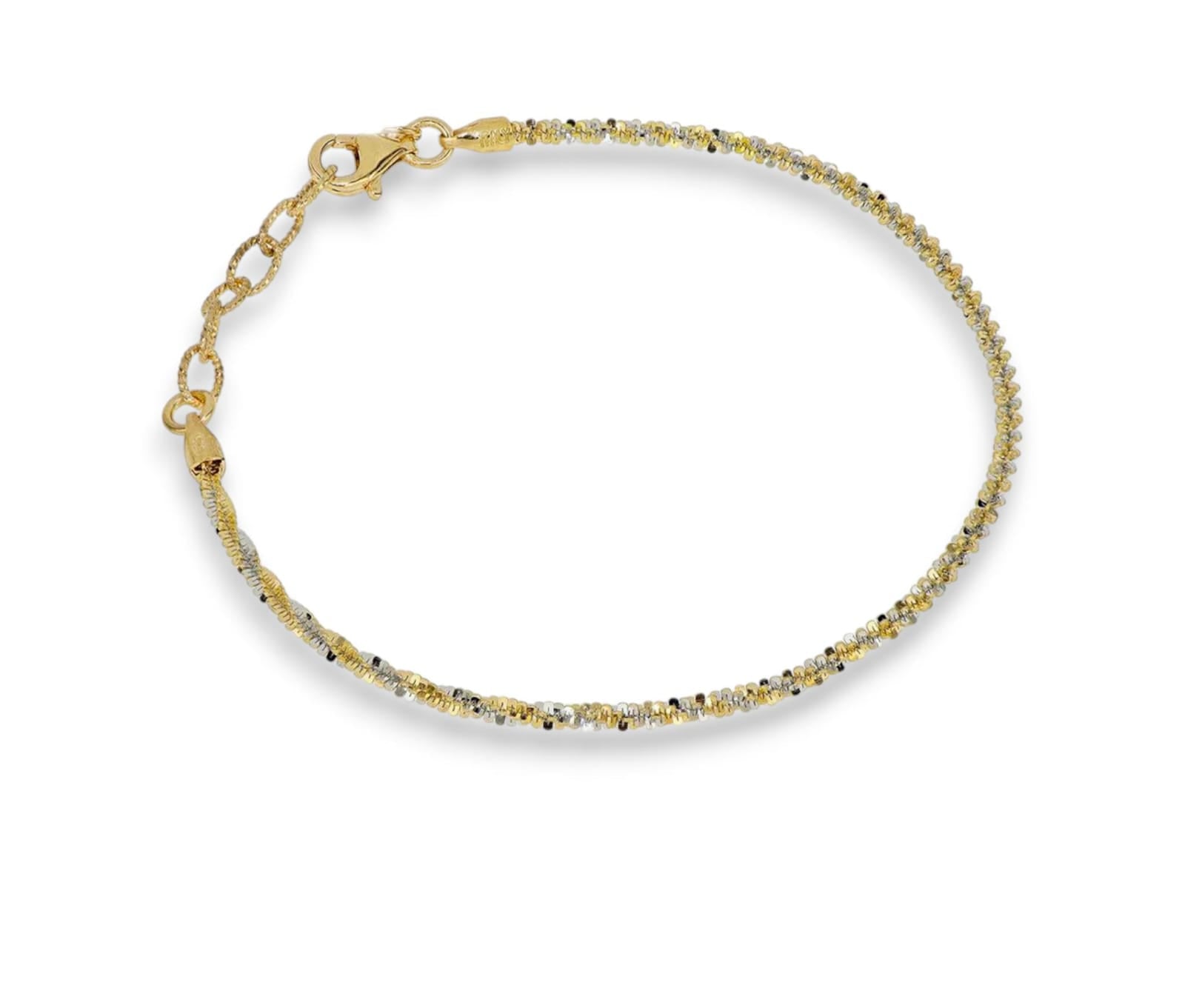 Aggiungi un tocco di eleganza e raffinatezza al tuo look quotidiano con il nostro bracciale in argento 925 bicolore. Questo gioiello, grazie al suo design intramontabile e alla qualità dei materiali, è perfetto per ogni occasione, rendendoti sempre chic e alla moda.