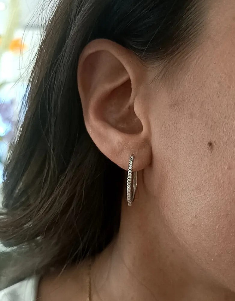 Aggiungi un tocco di eleganza al tuo look quotidiano con questi raffinati orecchini a cerchio. Realizzati in argento 925 di alta qualità, questi orecchini sono impreziositi da zirconi incastonati che conferiscono una brillantezza unica. La loro dimensione discreta li rende perfetti per ogni occasione, sia per un evento formale che per un'uscita casual.