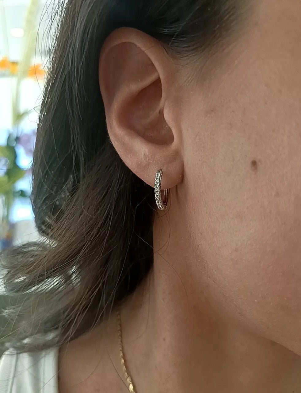 Aggiungi un tocco di eleganza al tuo look quotidiano con questi raffinati orecchini a cerchio. Realizzati in argento 925 di alta qualità, questi orecchini sono impreziositi da zirconi incastonati che conferiscono una brillantezza unica. La loro dimensione discreta li rende perfetti per ogni occasione, sia per un evento formale che per un'uscita casual.