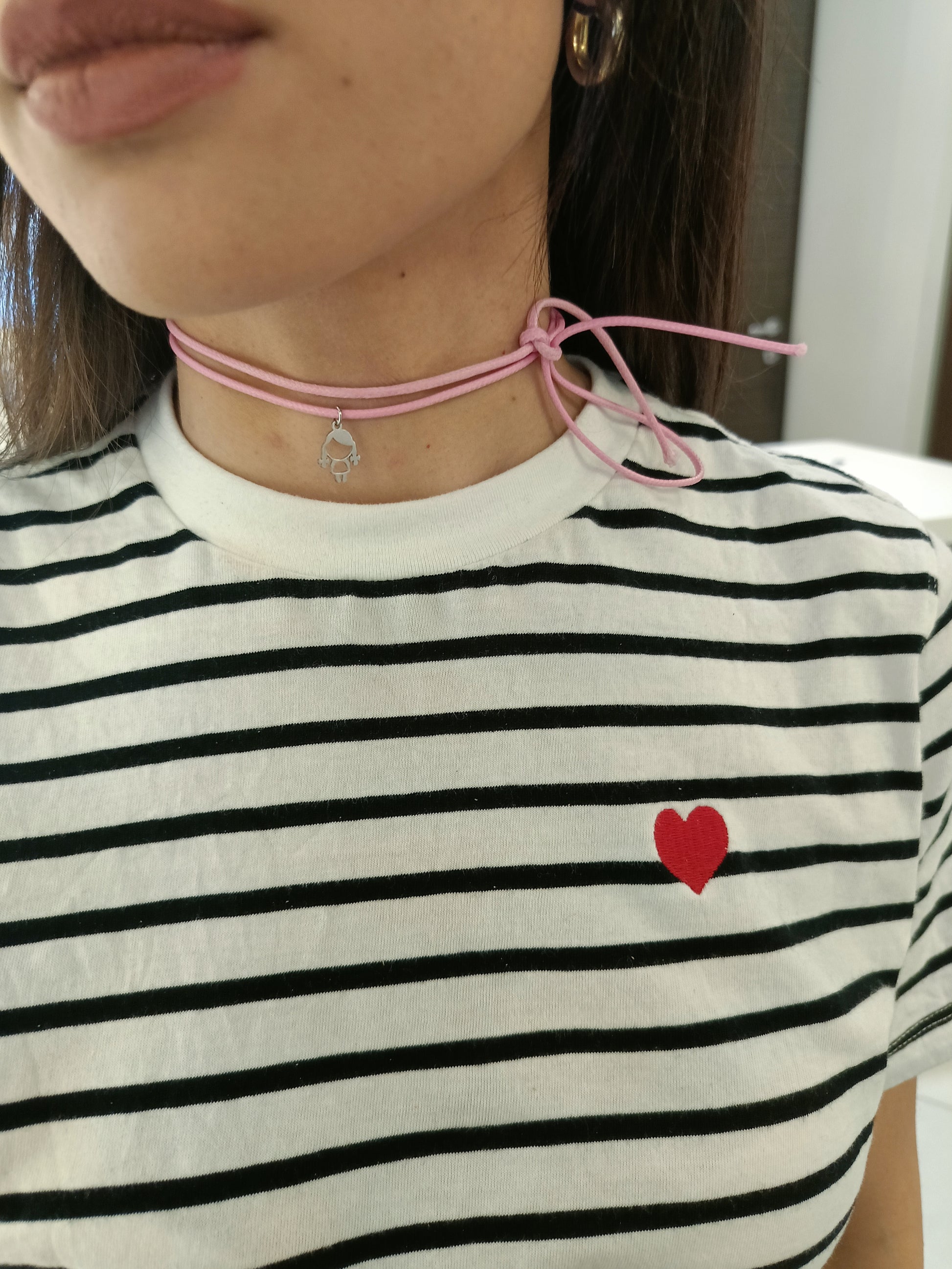 Collana con cordino in cotone cerato e ciondolo in acciaio inossidabile
