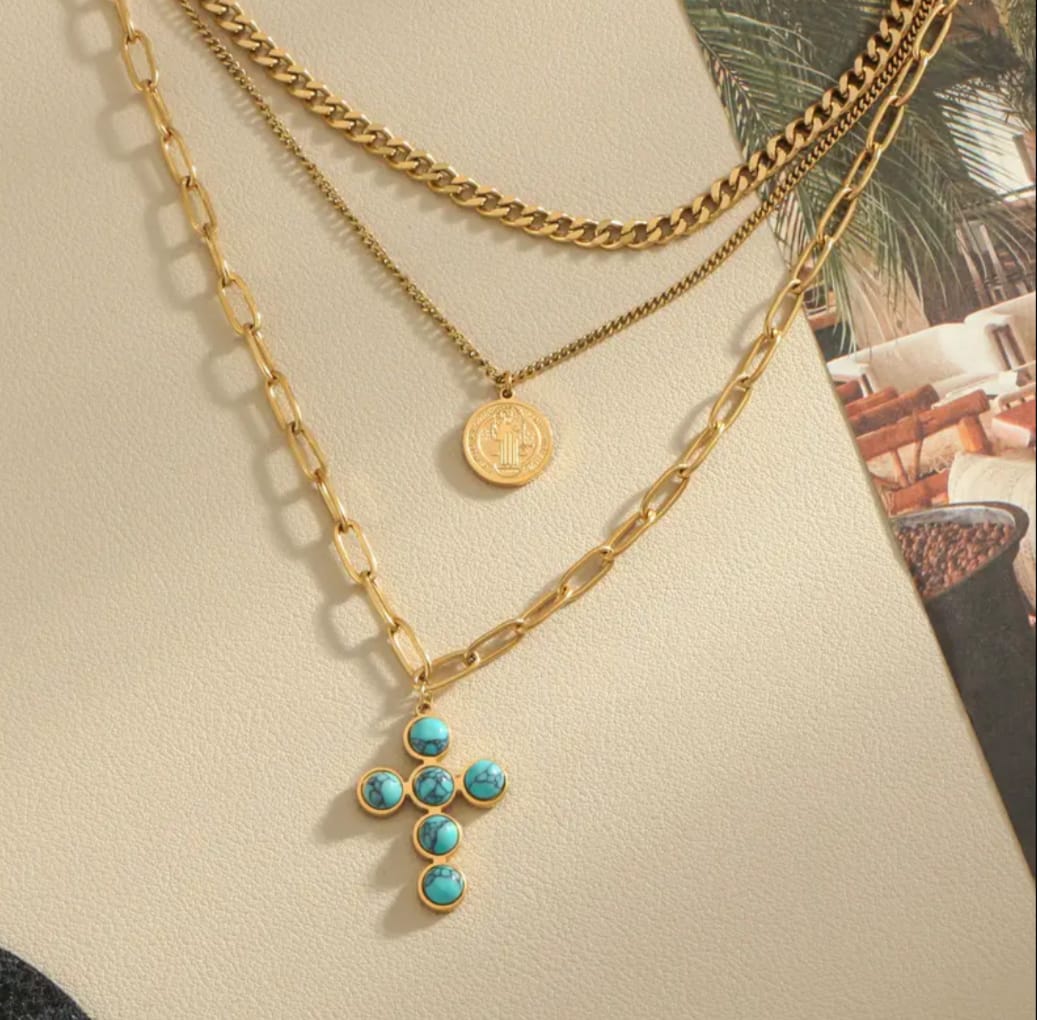 Collana in acciaio inossidabile 316L regolabile con pietre naturali.