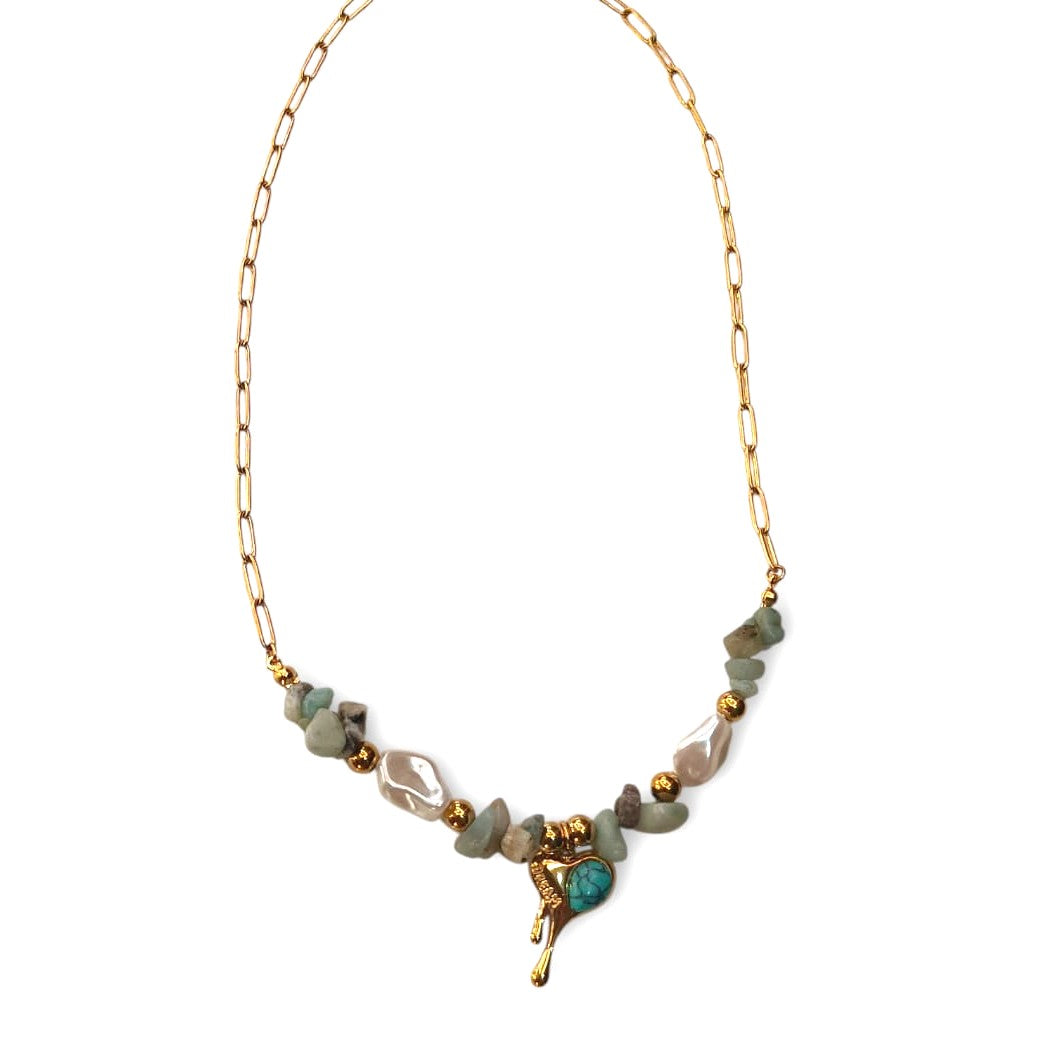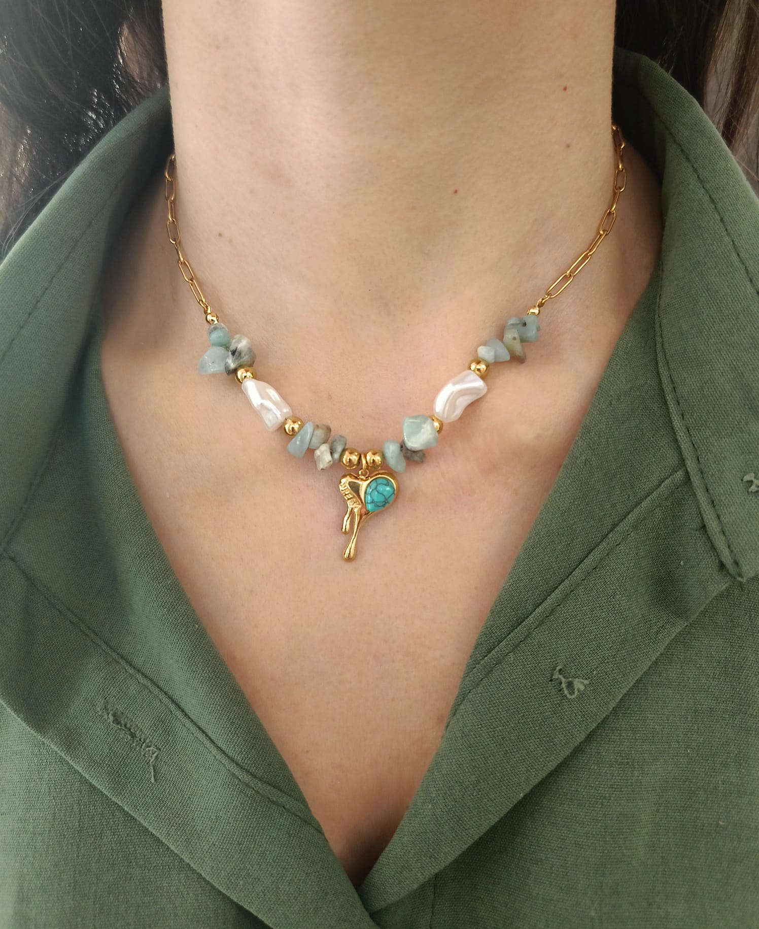 Collana in acciaio inossidabile 316L regolabile, con pietre naturali.