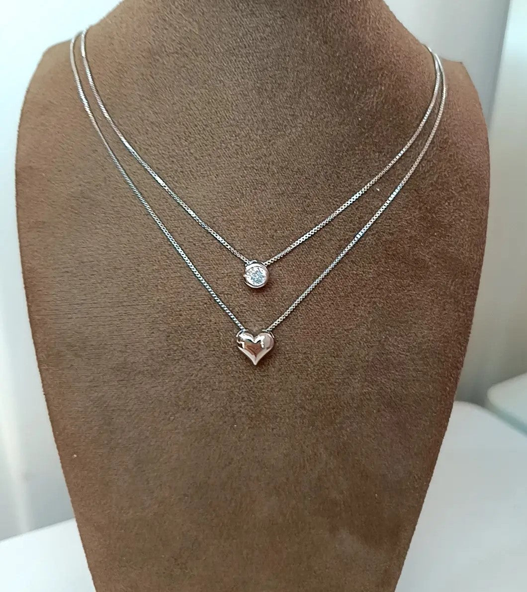 Esprima il suo stile unico con la nostra Collana Doppia in Argento 925. Questo elegante set include due collane delicate: una caratterizzata da un cuore delicato, simbolo di amore e affetto, mentre l'altra brilla con un raffinato punto luce, catturando la luce con ogni movimento. Realizzate con materiali di alta qualità, le collane sono perfette per aggiungere un tocco di classe e raffinatezza a ogni outfit. Ideale come regalo speciale o per arricchire la propria collezione di gioielli.