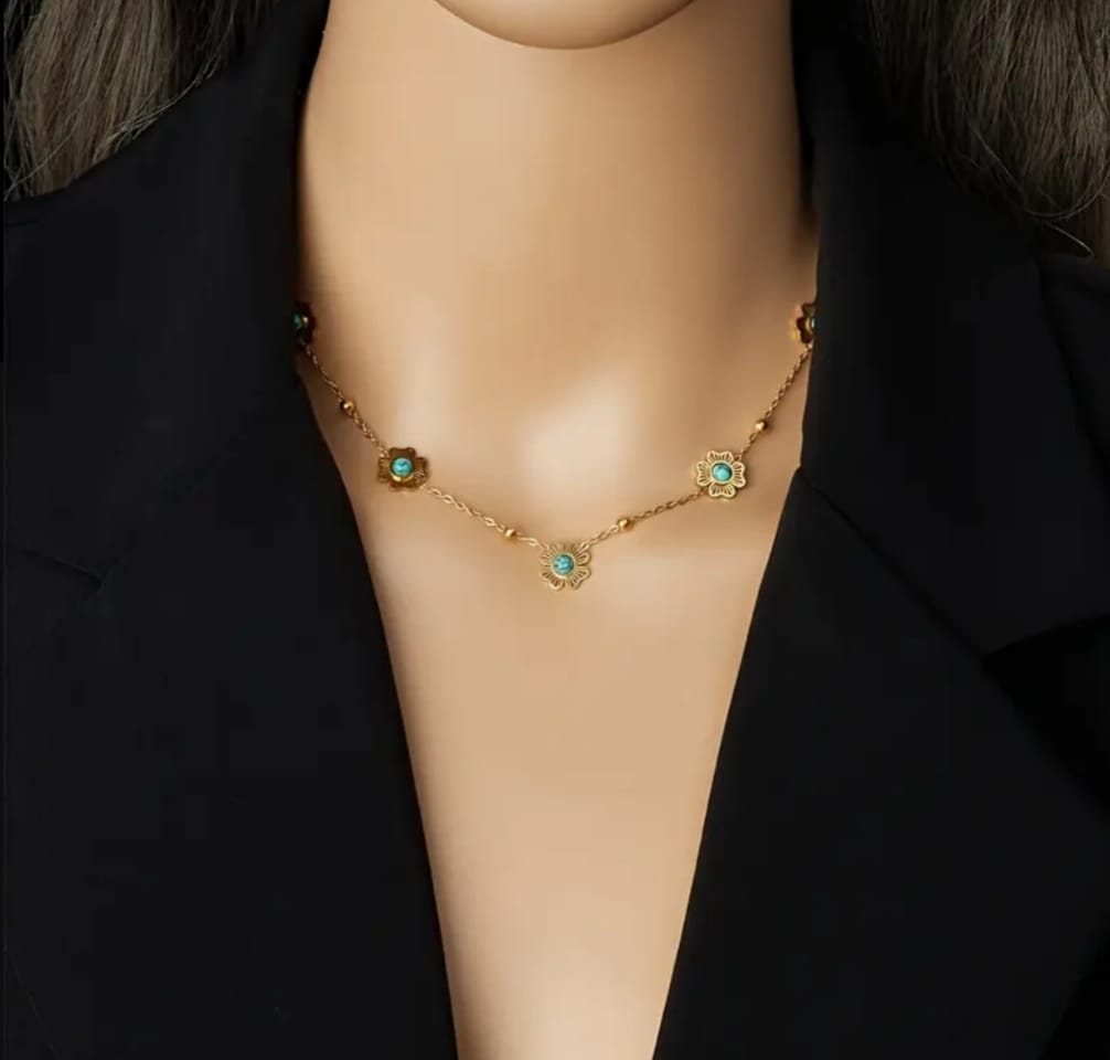Collana in acciaio inossidabile 316L regolabile, con pietre naturali.