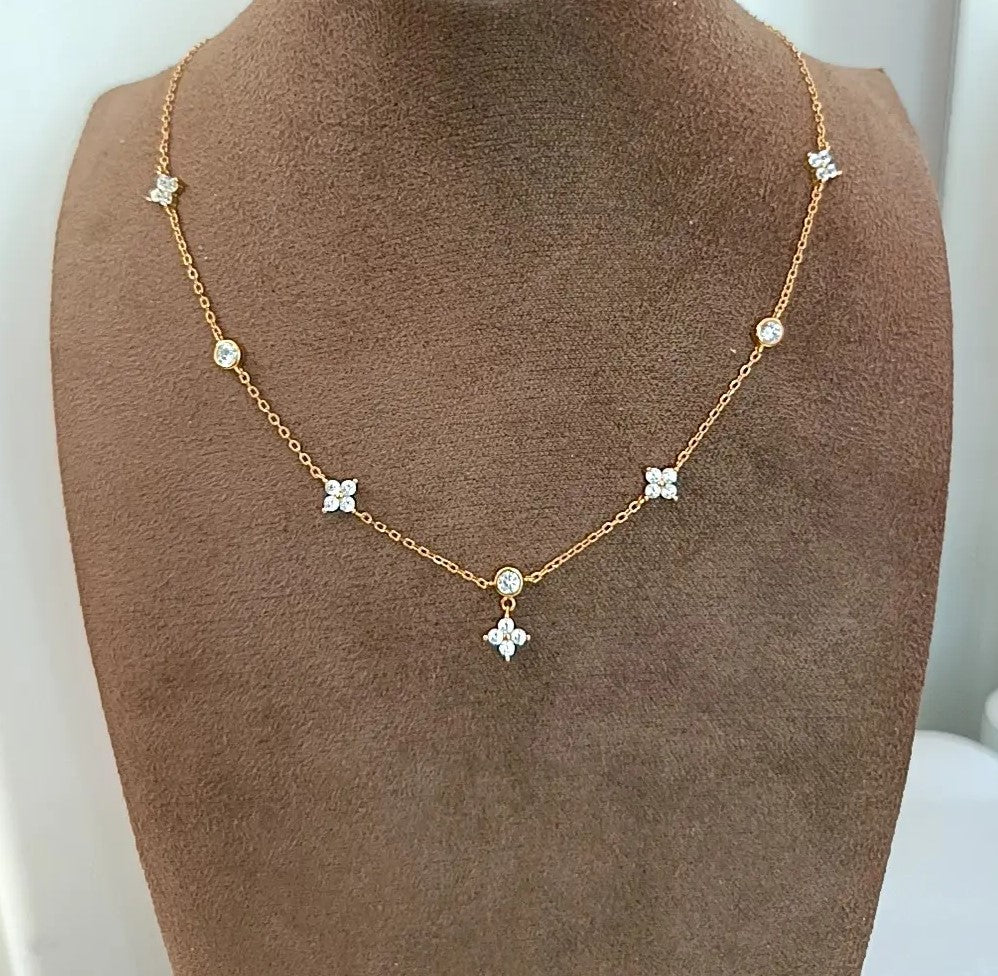 Eleva il tuo stile con la nostra Collana in Argento 925 placcata oro rosa. Questa elegante collana presenta una serie di ciondoli a forma fiori e di punti luce, ciascuno decorato con zirconi scintillanti per una luminosità senza pari. Al centro del collier, un grazioso pendente a forma di fiore aggiunge un tocco di eleganza raffinata.