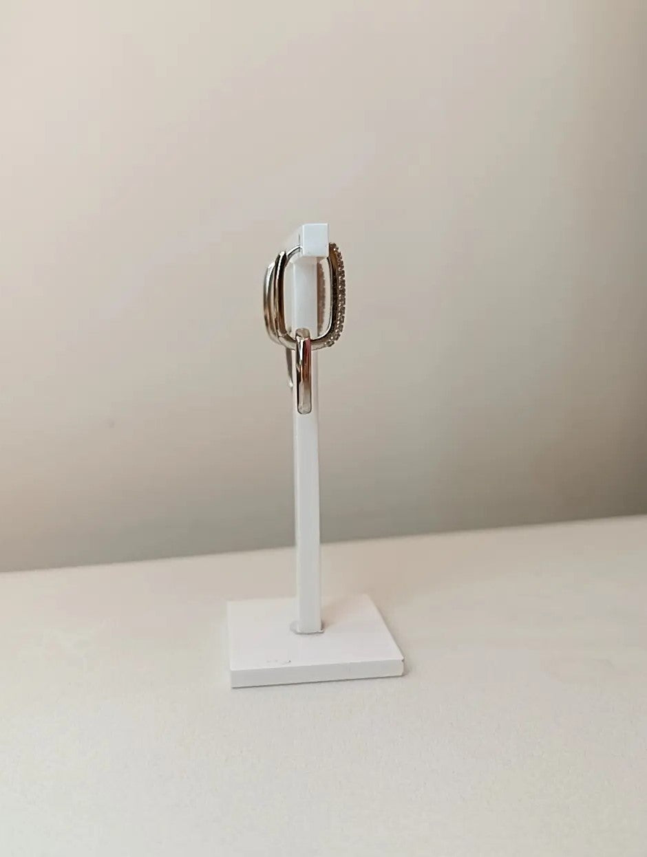 Coppia di orecchini hoops doppio in argento 925 con zirconi incastonati.