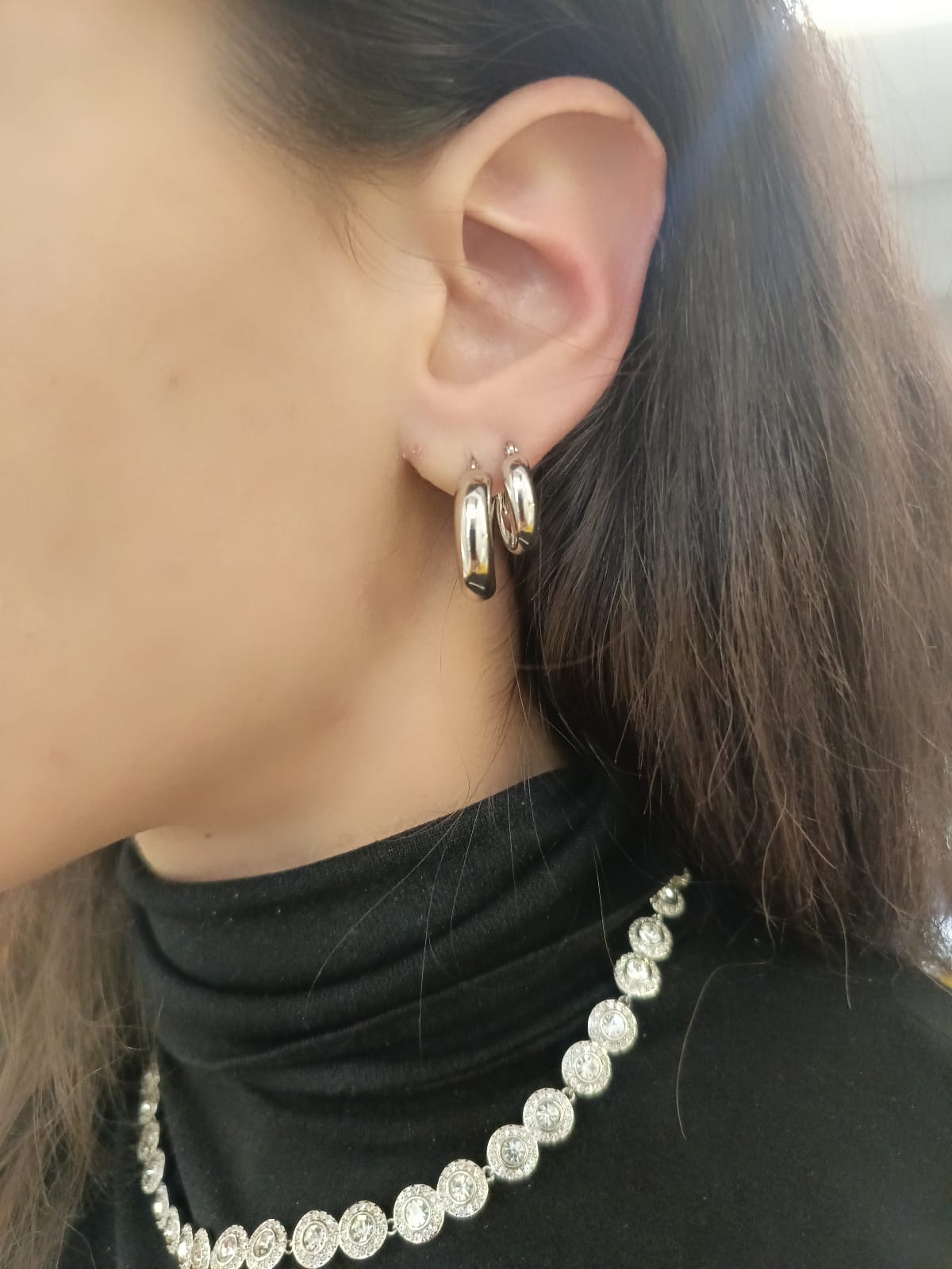 Coppia di orecchini a cerchio in argento 925 disponibile in due dimensioni da 9 mm e da 11 mm. Indossa il nostro orecchino "Queen" per avere un look unico.