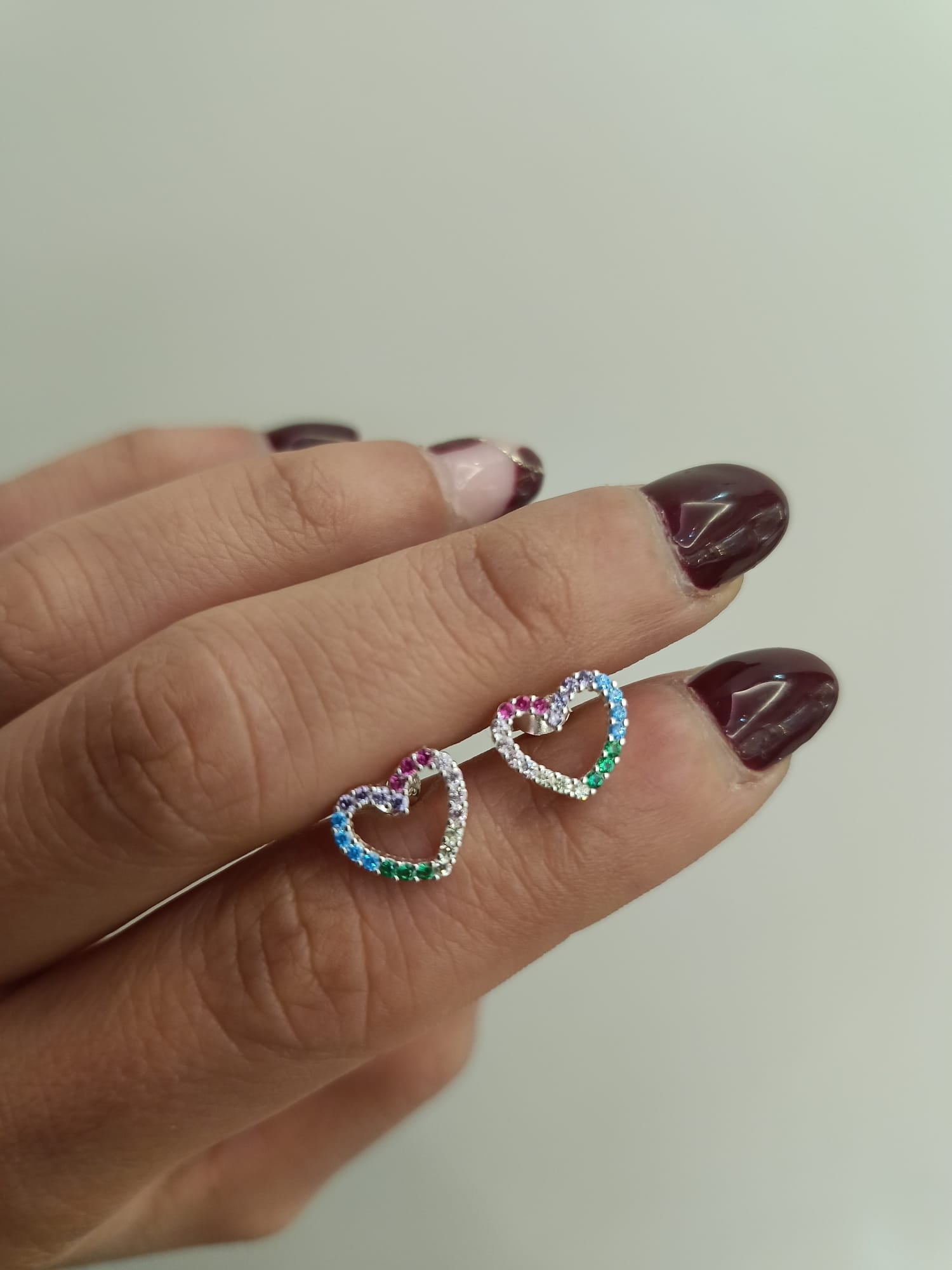 Coppia di orecchini cuore multicolor in argento 925 con zirconi colorati