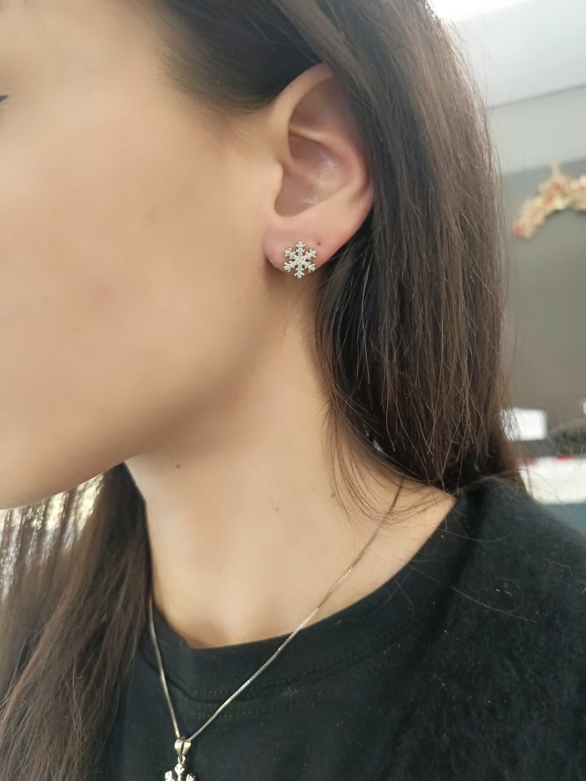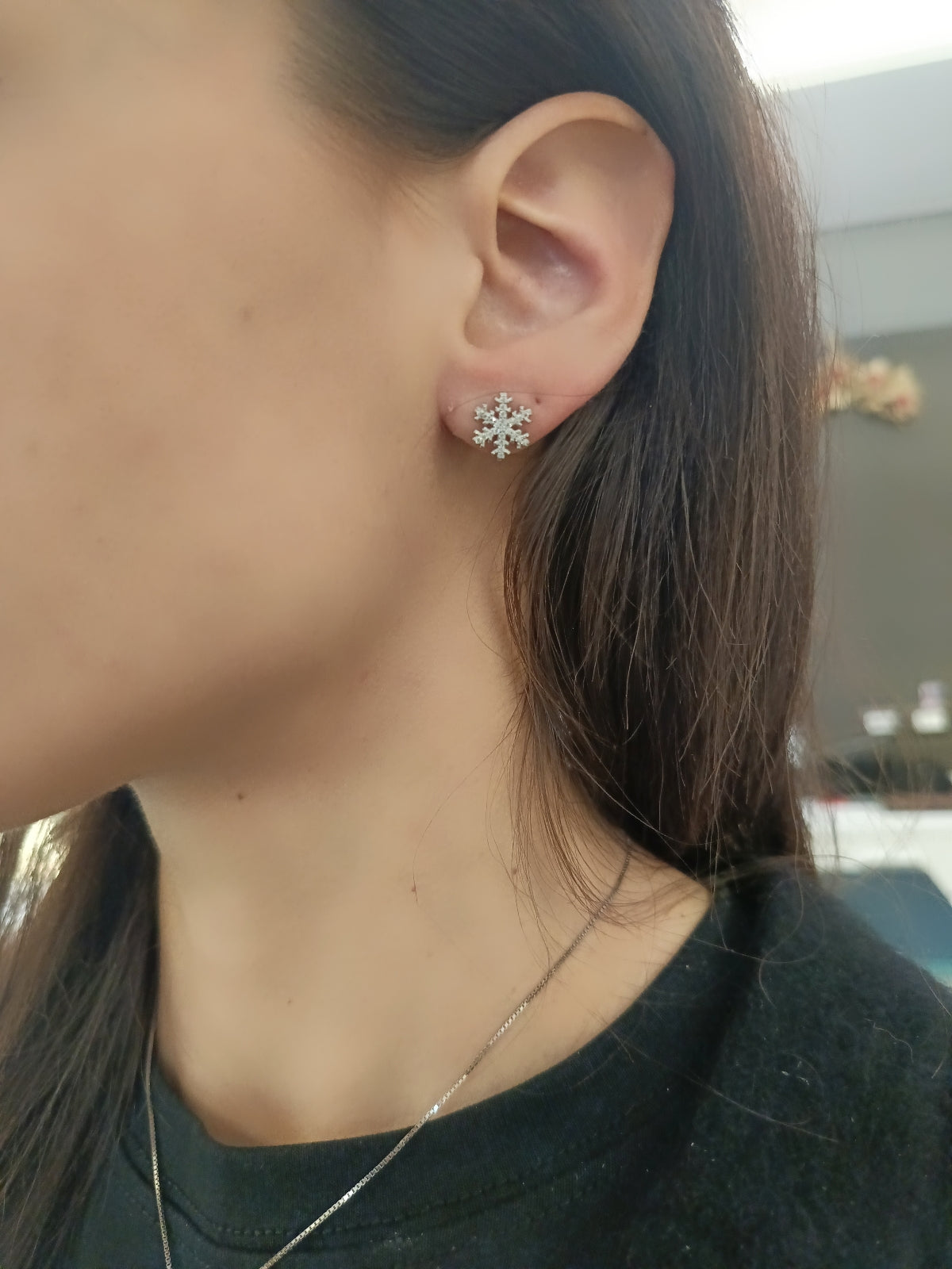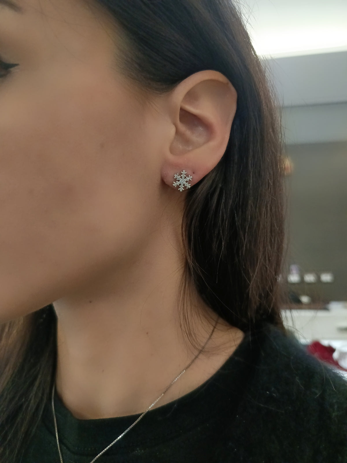 Coppia di orecchini fiocco di neve in argento 925, con zirconi incastonati.