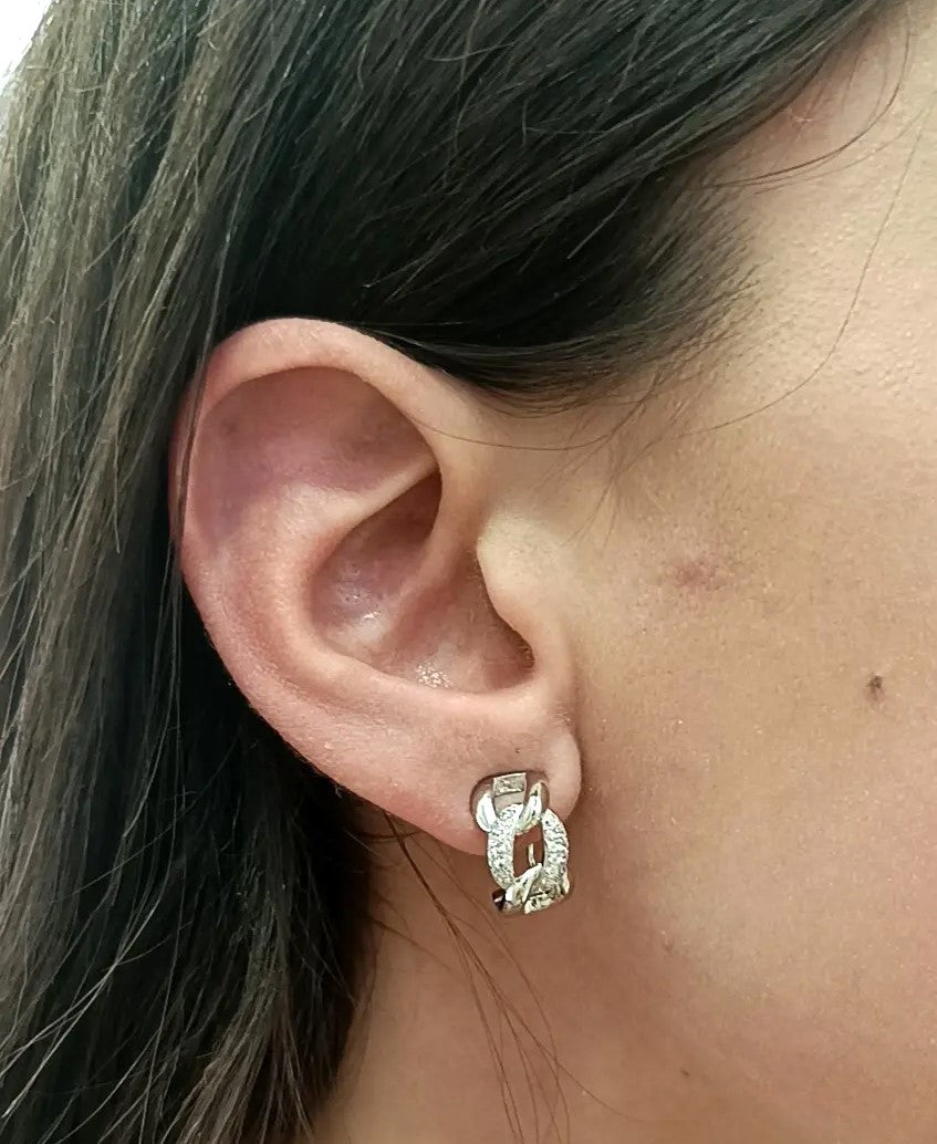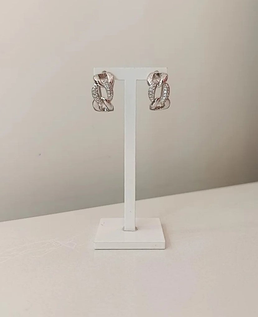 Coppia di orecchini intreccio in argento 925 con zirconi incastonati.