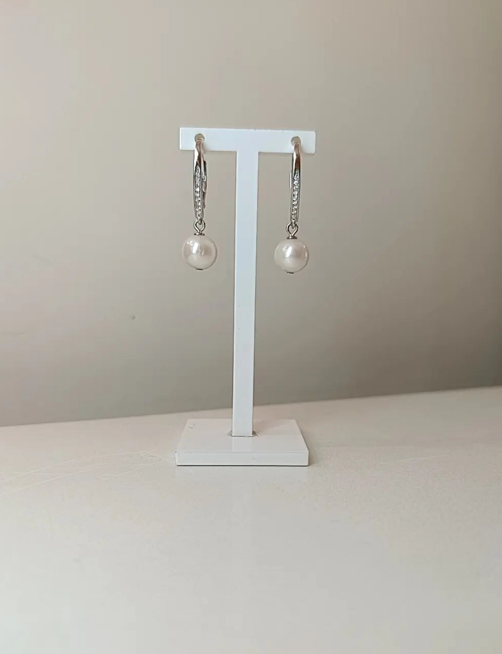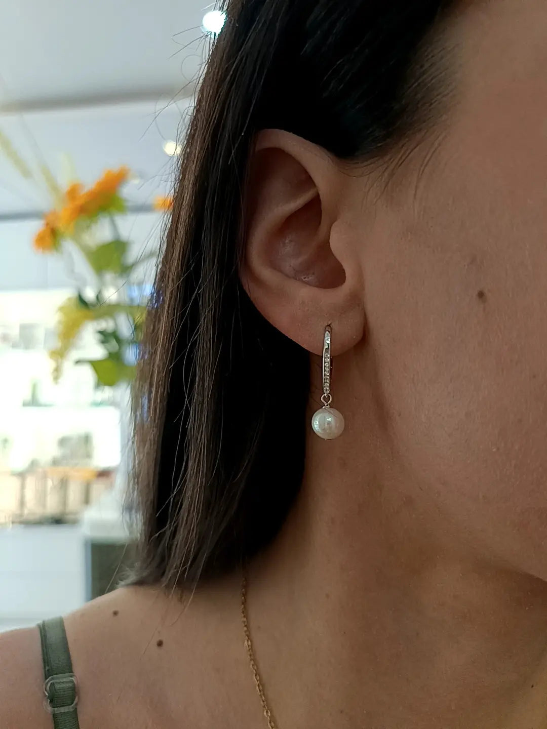 - Design: Orecchini cerchietto classici con perla pendente e zirconi sulla parte davanti dell'orecchino.