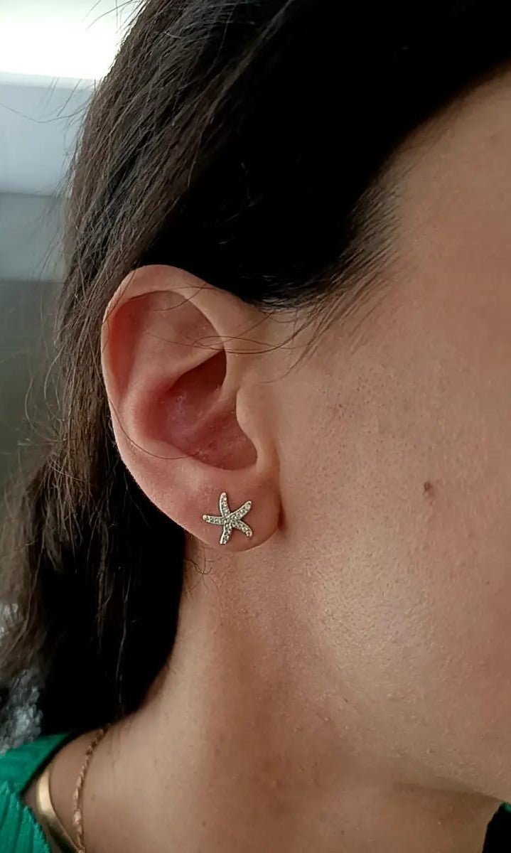 Esplora l'eleganza del mare con i nostri orecchini a forma di stella marina, realizzati in argento 925 e ricoperti da splendidi zirconi bianchi. Perfetti per aggiungere un tocco di lusso scintillante al tuo look quotidiano o per illuminare le tue serate speciali.