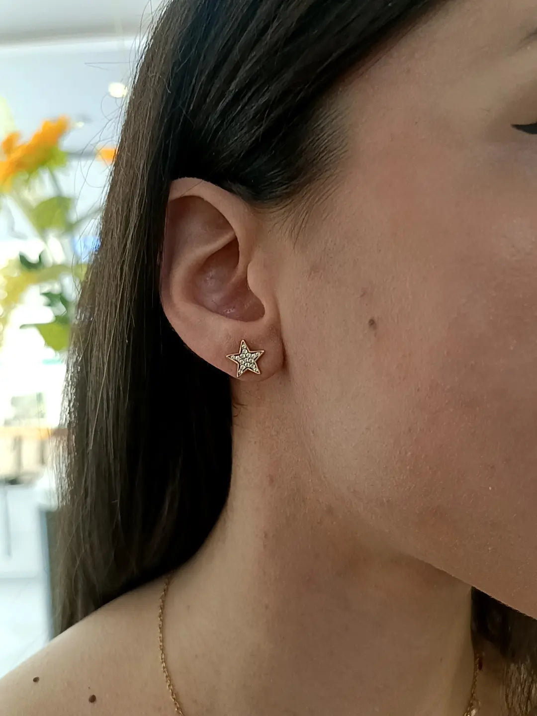 Scopri la bellezza scintillante degli orecchini stella a lobo in argento 925 con montatura placcata oro. Questi eleganti orecchini sono il perfetto equilibrio tra grazia e modernità, ideali per chi ama aggiungere un tocco di luminosità al proprio stile.