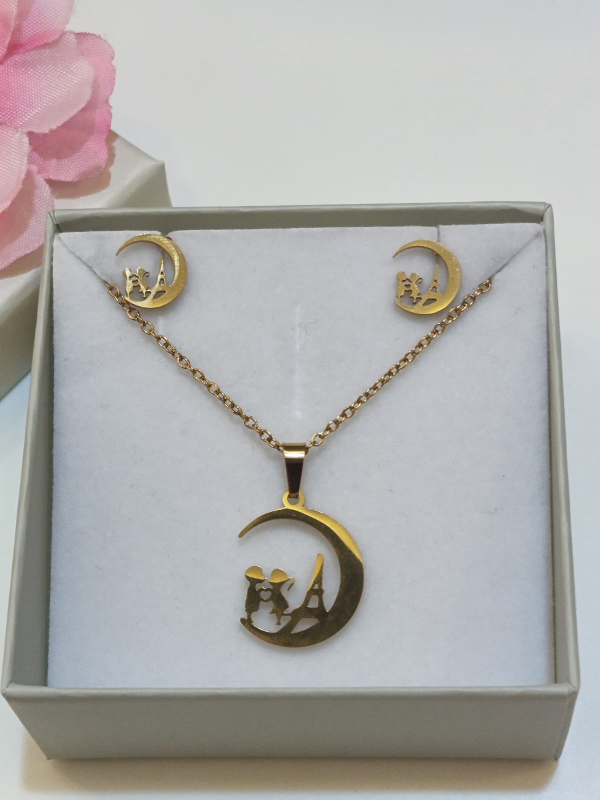 Set collana e orecchini in acciaio inossidabile 316L.